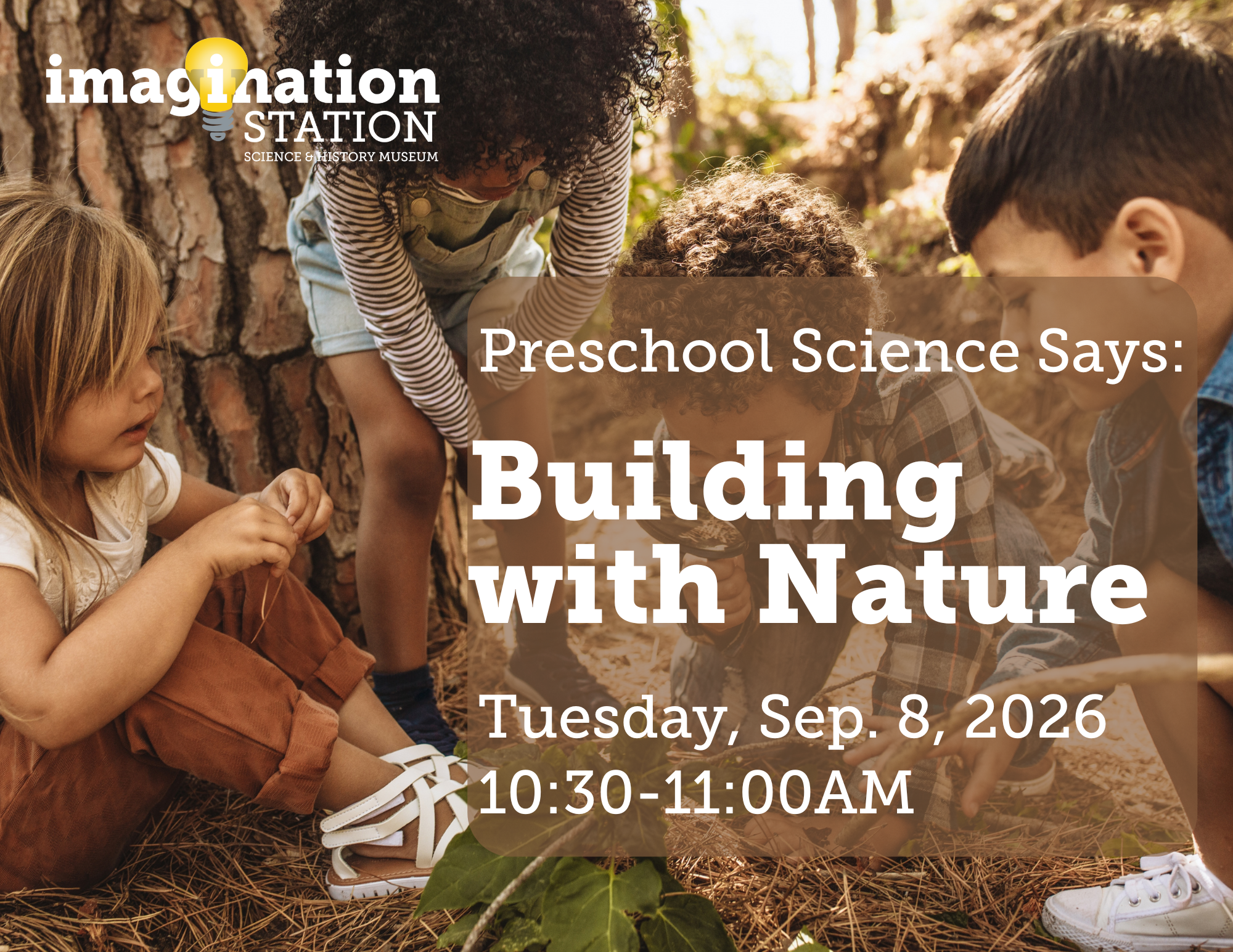 Imagination Station 224 Nash St SE, Wilson, NC, United StatesLeaves, twigs, and seeds become art in our hands. Nature gives us the tools to build, create, and imagine in new ways. Preschool Science Says is a FREE, interactive program…